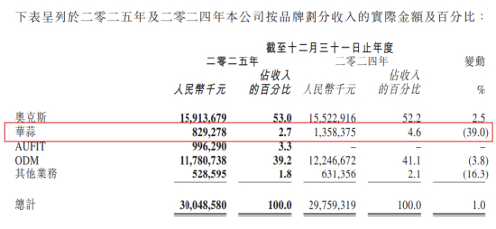 不过,理想很丰满,现实很骨感。2025年,奥克斯品牌收入从2024年的155.23亿元仅小幅增长2.5%至159.14亿元;华蒜品牌收入却从13.58亿元大幅下滑39%至8.29亿元;另外,ODM业务收入下滑3.8%,其他业务收入也下滑16.3%。