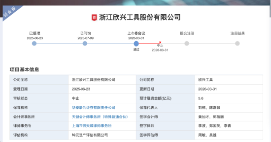 3月31日,欣兴工具创业板IPO上会并获通过。但就在同一天,公司被深交所列入“中止”状态——这一“过会即中止”的进度,在A股IPO审核中并不常见,也迅速引发市场关注。